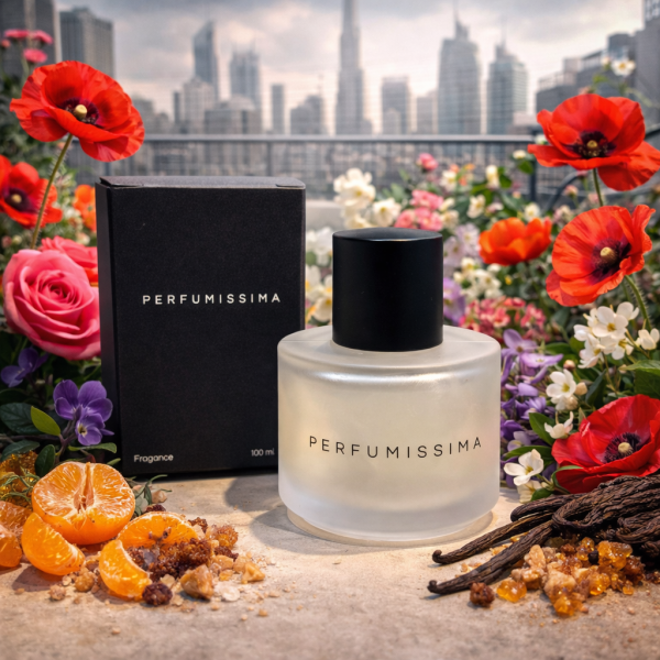 Notas de Fondo: El cierre es suave, cálido y envolvente, definido por el almizcle blanco, la dulzura de la vainilla y la resina de incienso.