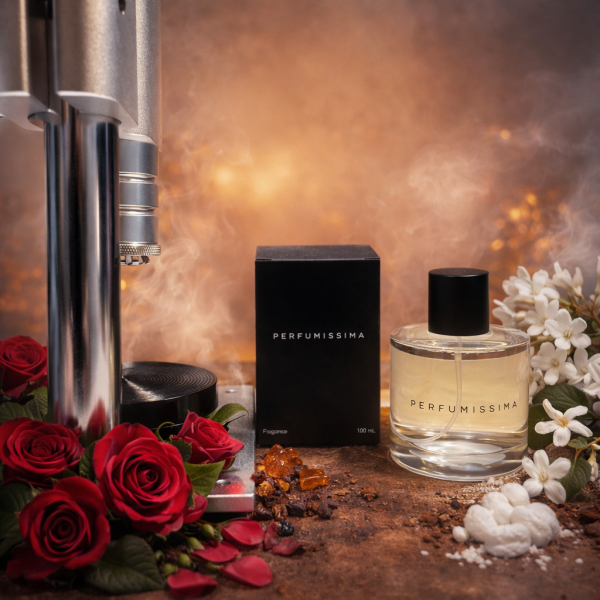 Notas de Corazón: Un suntuoso y elegante bouquet floral donde la rosa búlgara y el jazmín egipcio se entrelazan, calentados por la intensidad terrosa y misteriosa del pachulí de Sumatra.