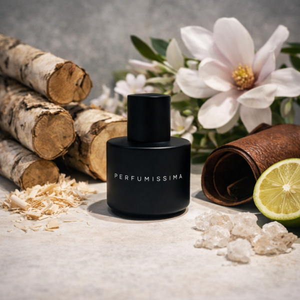 Las notas florales y cítricas se desvanecen para dar paso a notas intensas de maderas blancas, cuero (similar a la gamuza), abedul y un almizcle dulce y muy perceptible. El secado es amaderado, con toques ahumados, ámbar y cedro.