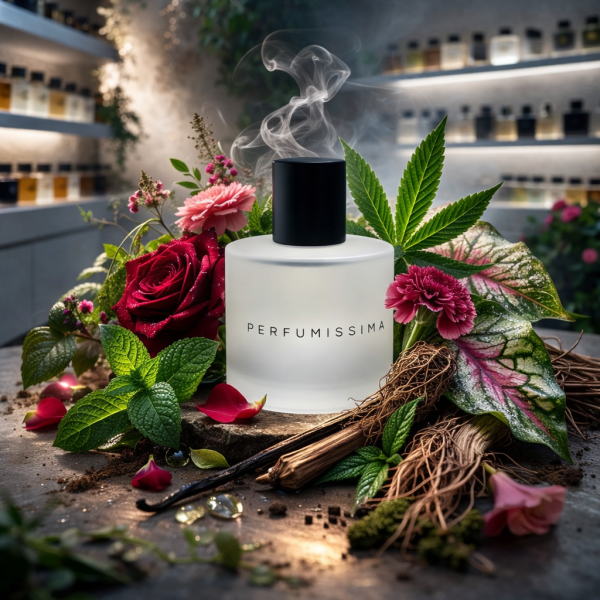 Las notas de fondo proporcionan una base duradera y sensual a la composición. Incluyen el vetiver y el ámbar, que aportan un matiz amaderado, terroso y ligeramente dulce. También se menciona el caladio (hoja de elefante), que contribuye al eco misterioso y de bosque oscuro.