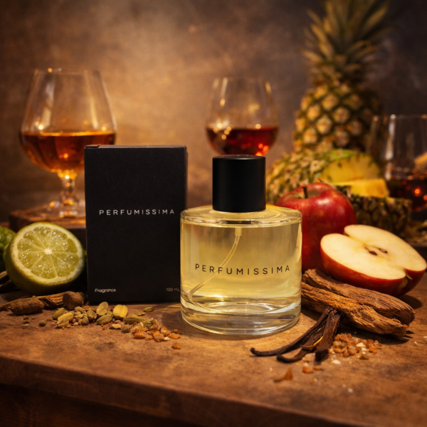 Notas de Corazón: El alma de la fragancia. Una mezcla realista de manzana roja jugosa, brandy intenso, ron y un toque de vainilla dulce sobre una base de musgo.