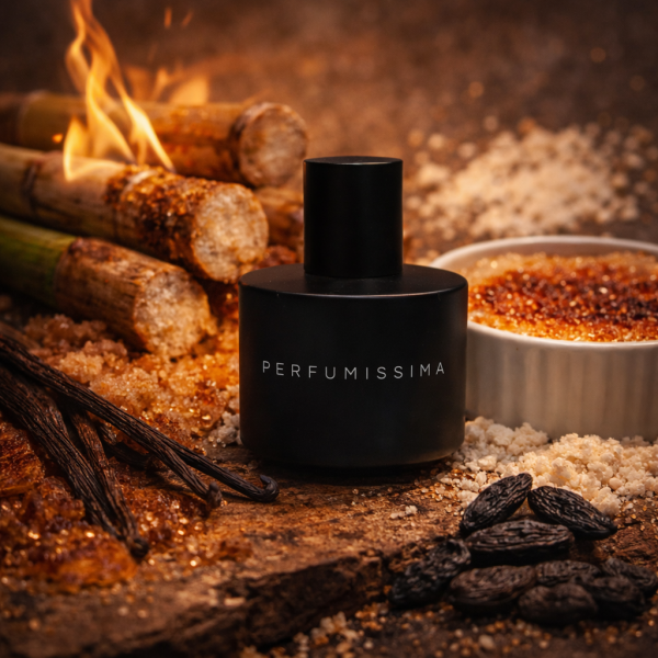 Notas de Salida : Un estallido intenso y dulce de caña de azúcar tostada, evocando el caramelo crujiente y tostado.